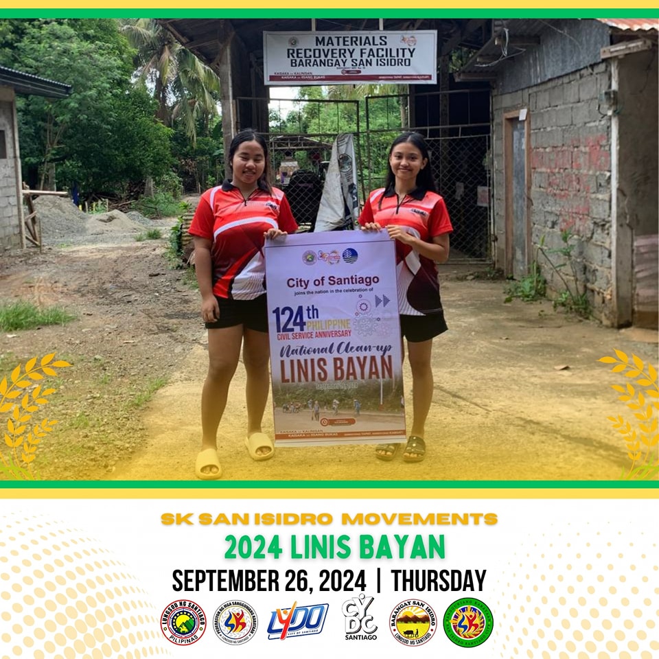JOIN THE SK OF BARANGAY SAN ISIDRO IN THE 2024 LINIS BAYAN ACTIVITY IN CELEBRATION OF THE 124TH PHILIPPINE CIVIL SERVICE ANNIVERSARY!